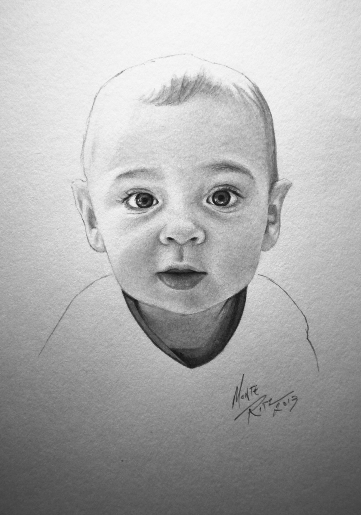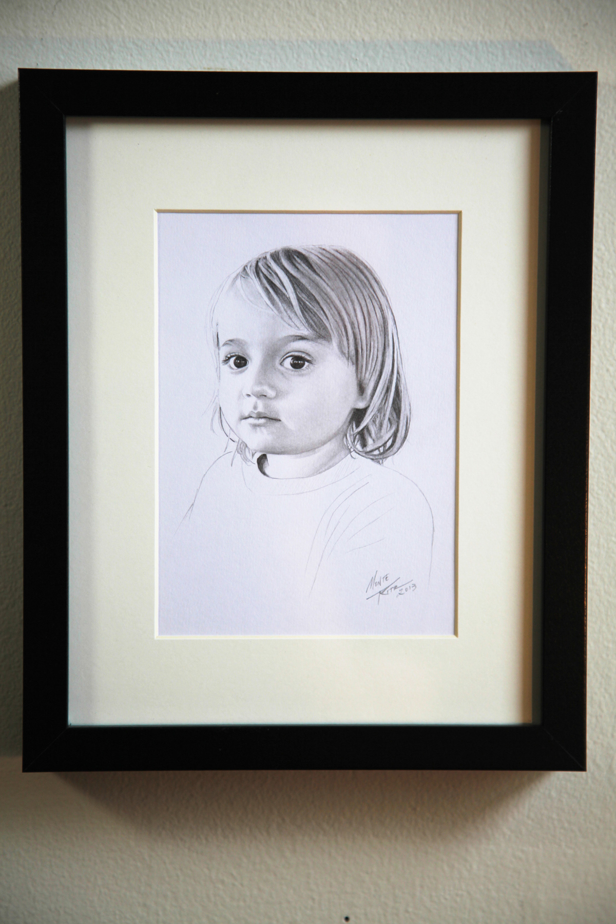 Custom miniature 5"x7" portraits drawn in graphite on paper